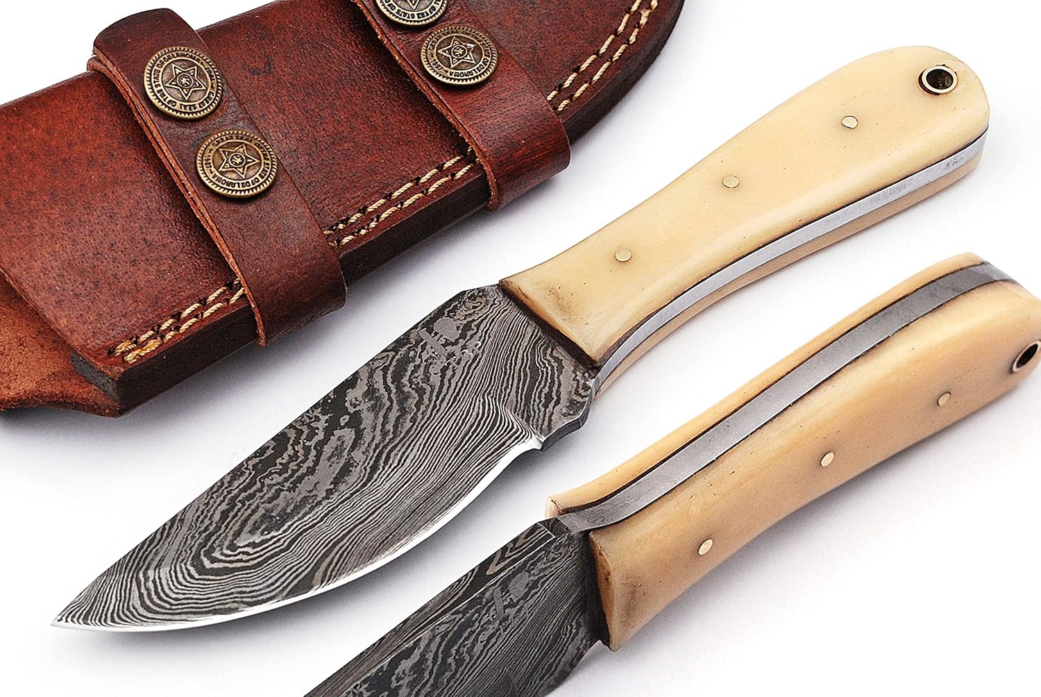 Admirable damascus knife with outstanding craftsmanship. The attention to detail is out of this world. Custom handmade damascus knife damascus bolster camel bone handle. 8″ inches handle length damascus steel of this knife has high quality contents to give an excellent edge and sharp cutting abilities. These professional camel knife are ideal for hunting, camping and tactical uses.