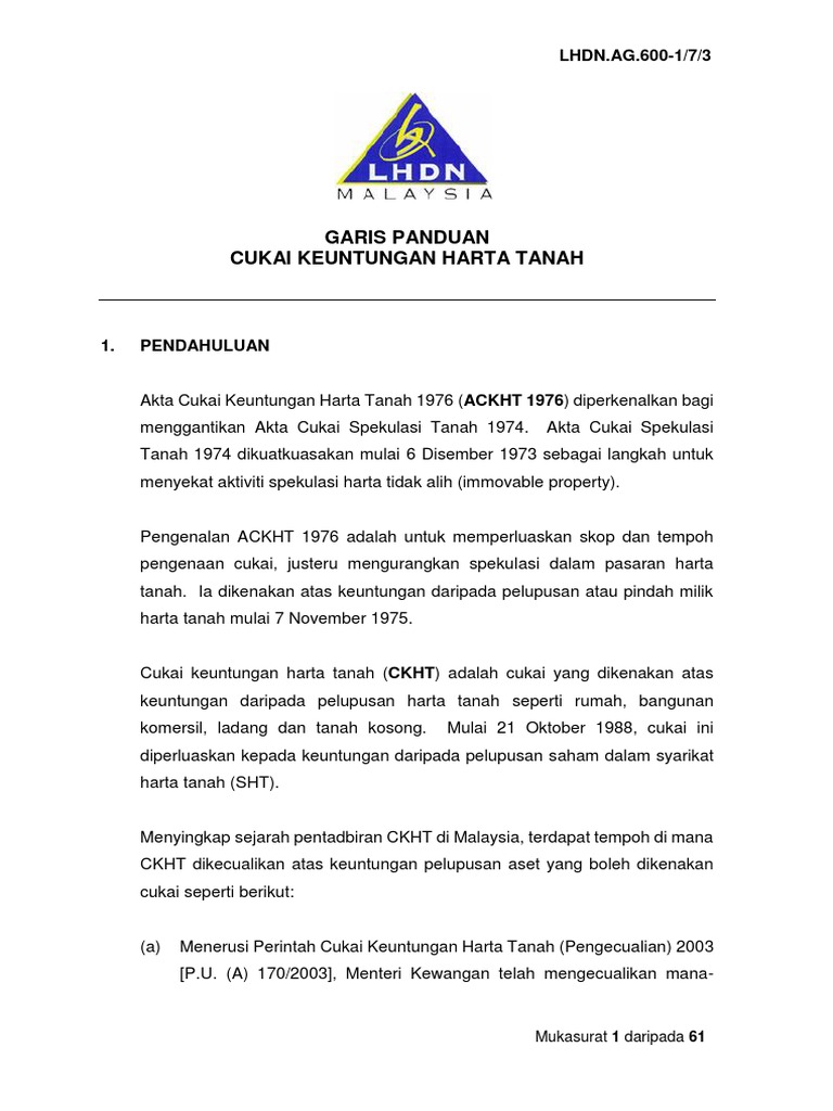 Apa yang kebanyakan orang tak tahu adalah ckht juga digunakan dalam pemerolehan dan penjualan saham dalam syarikat di mana 75% aset adalah dalam. Bagi pelupusan harta tanah oleh individu, tolakan pengecualian di bawah perenggan 2 jadual 4 hendaklah dibenarkan terlebih dahulu sebelum hrta tolakan kerugian. Akta cukai keuntungan harta tanah 1976. Show posts by this member only post 1. Perbaikan tanah, seperti jalan diseputar lokasi perusahaan yang dibangun perusahaan, tempat parkir, pagar, dan saluran air bawah tanah.