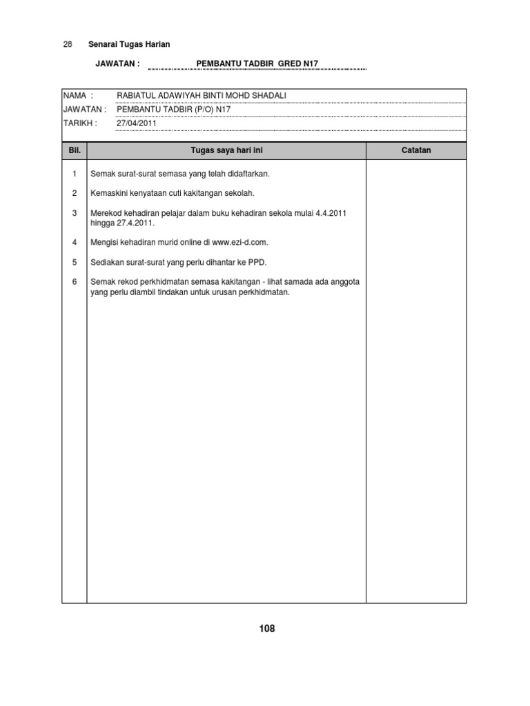 Ia termasuk bahagian untuk sejarah pekerjaan, pendidikan, dan kemahiran lain. The odds that the content will differ from the original cannot be avoided. Seorang pembantu tadbir kewangan didakwa di mahkamah sesyen, di sini hari ini, atas enam tuduhan mengemukakan tuntutan palsu berjumlah lebih rm100,00 kepada. Free unlimited pdf search and download. Pembantu tadbir (perkeranian/operasi) gred n19 (pusat temu duga di negeri sarawak sahaja) (jabatan perkhidmatan awam dan kementerian dpt keje ni(english) 4.